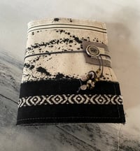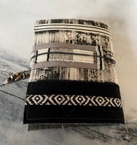 Small one-of-a-kind (ooak) handmade art journal. This journal is filled with a mixture of pages and papers with my original collage work, drawing, painting, photography, digital art and selected epherma from old books. There are tea dyed, hand dyed papers, Japanese papers, various textiles including handwoven ones, stitching by machine and hand slow stitching. There is plenty of room to add your own artwork, writing and drawing etc. to make this journal your own. Anything goes let your creativity soar.